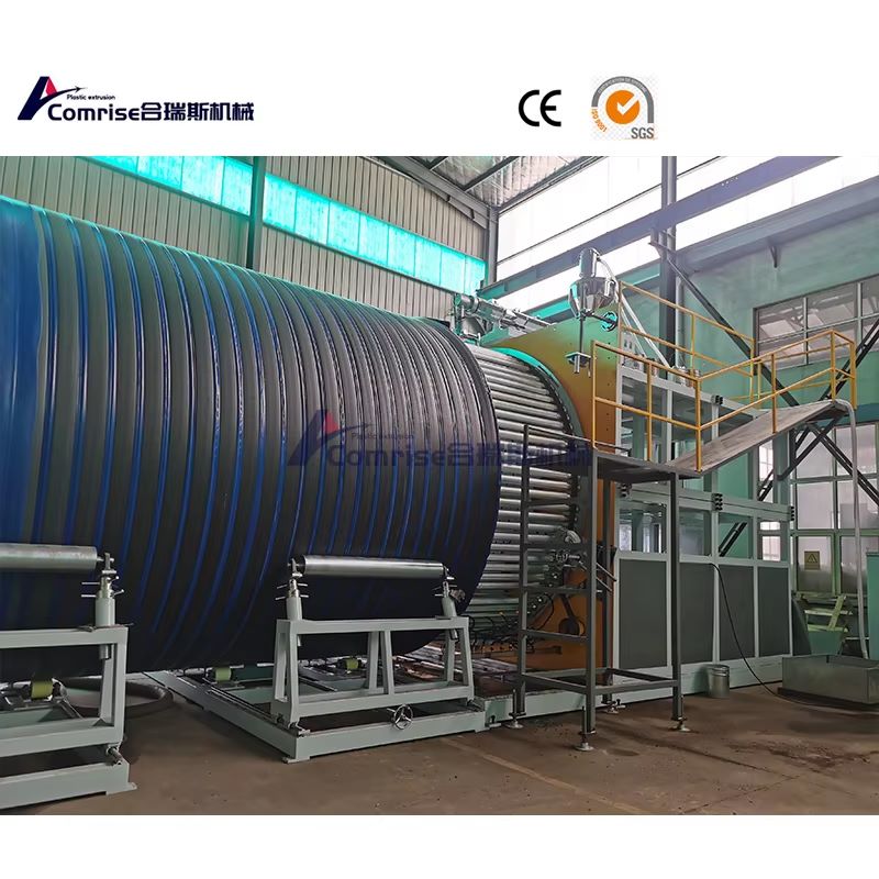 Votla stena navijanje cevi Ekstruder, kalup, navijaški stroj in oblikovanje plesni, ekstruder za talino, sistem vakuumskega lepila, rezervoar za razprševanje, rezalni stroj, raztovarjanje platforme in sistem za nadzor proizvodnje, ki ga izdelujemo.