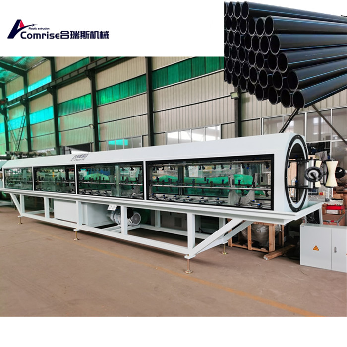 Enojna vijačna ekstruder+Co Extrusion Machine+cevi za plesen+vakuumsko velikost škatle+hladilna razpršilna škatla+šest traktor za rake čeljusti+stroj za rezanje brez čipa+regal.