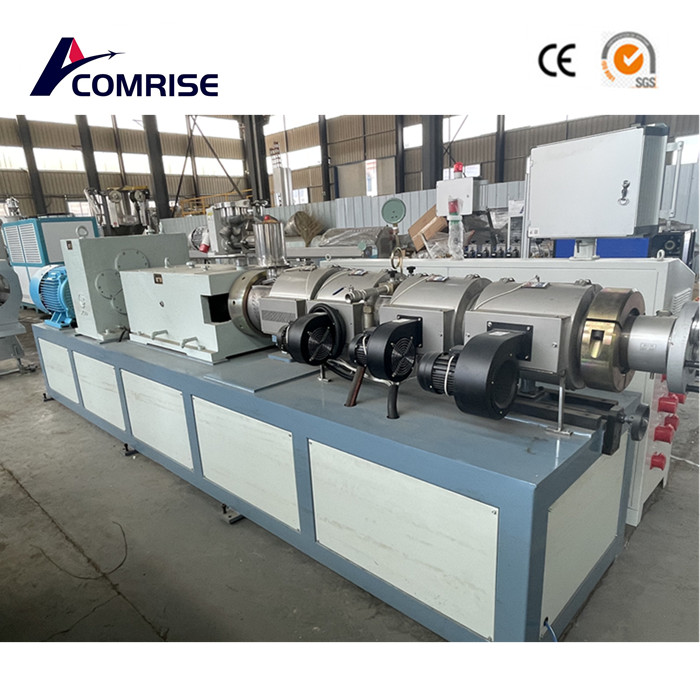 Ta komplet je sestavljen iz stožčastega ekstruderja dvojnega vijaka, vakuumskega kalibrirajočega rezervoarja, izvlečenja, rezalnika, zložljivega ali zvočnega stroja itd. Ekstruder in izvleček sprejmeta uvoženo napravo za nadzor frekvence AC. Sesalni črpalki in vlečni motor se oblikujejo nadrejene dobrote. zahteve. Lahko izberete vrsto rezanja žage ali vrsto rezanja planetarnega reza.